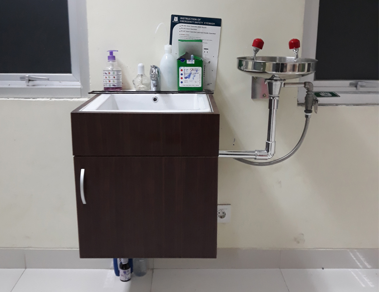 - Eye wash harus dipastikan dapat beroperasi dan mempunyai aliran air yang konstan dan memadai.